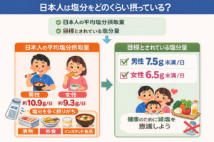この章では、日本人が普段どの程度の塩分を摂取しているのか、そして目標とされる基準値について整理します。まずは2つのポイントを押さえましょう。