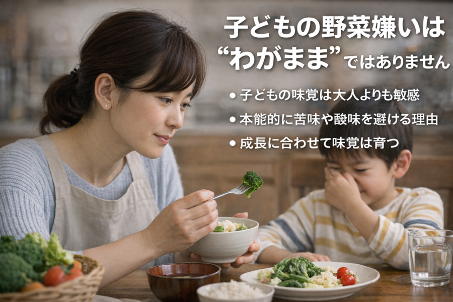 子どもが野菜を嫌がると、「好き嫌い」「わがまま」と感じてしまう方も多いでしょう。しかし実は、子どもの野菜嫌いにはしっかりとした理由があります。この章では、子どもの味覚と野菜嫌いの本質について、知っておきたいポイントを解説します。