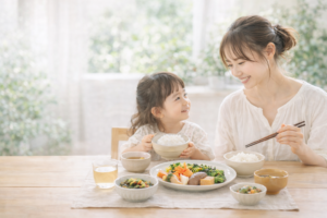 また、日本人にとってのごはんは腹持ちがよく、食べることで「お腹に力が入る」ような安定感があるのも特徴です。主食としてごはんをきちんと食べる習慣があると、間食や甘いおやつを欲しがる回数も自然と減っていきます。