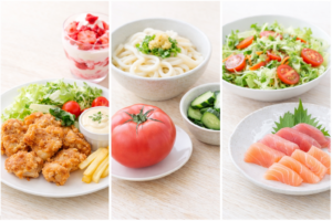 トマトだけ、きゅうりだけ、麺類だけといったように、一つの食材を単品で食べる食事が続くと、体への負担が大きくなります。単品の食事は偏りが生まれやすくなります。
